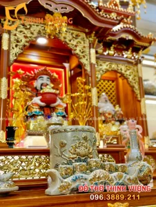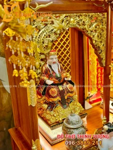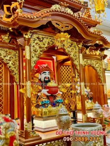 Bộ Ban Thần Tài 3 Gian Gỗ Hương Siêu Vip Set Sứ Rạn Nổi