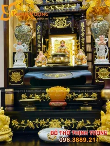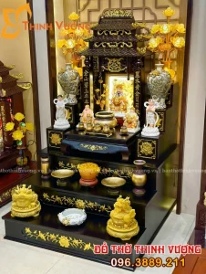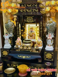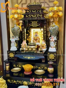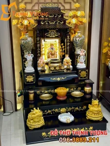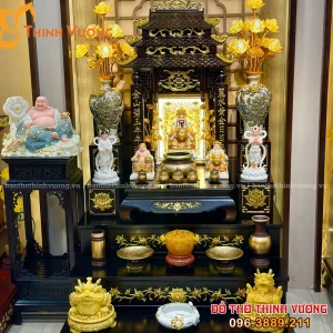 Bộ Bàn Thần Tài Gỗ Hương JinShan Bệ 3 Tầng Đồng Dát Vàng