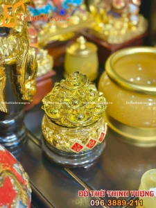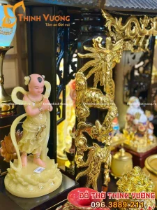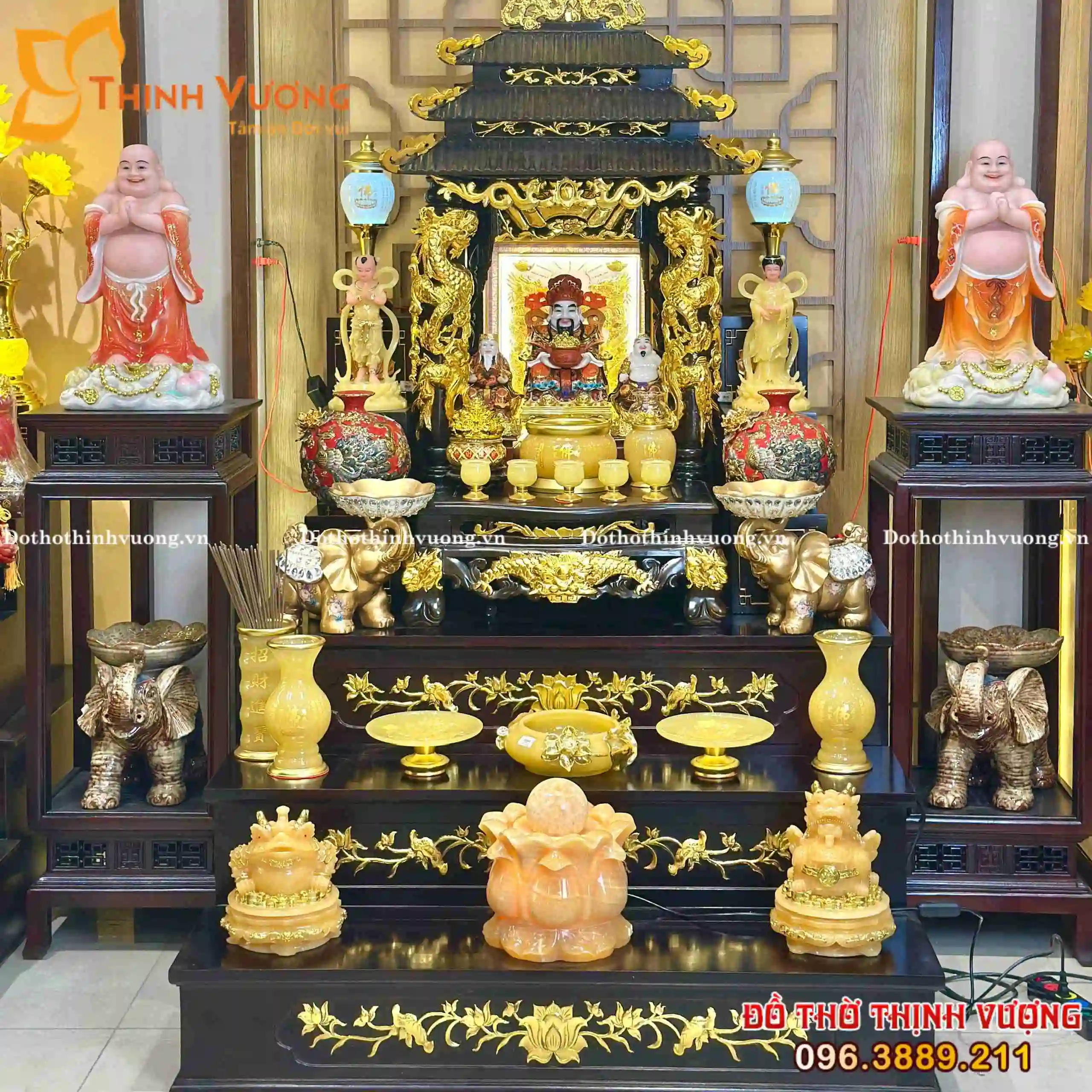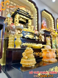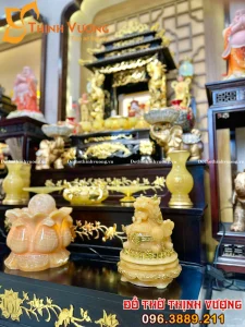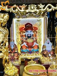Bộ Thần Tài 3 Mái Xoan Dát Vàng Đồ Thờ Đá Onix Vàng