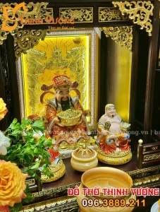 Trọn Bộ Ban Thờ Thần Tài Gỗ Long Não + Đá Bọc Đồng Đài Loan